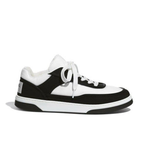 클래식한 테니스 스니커 디자인과 뒷면 샤넬 로고 라벨 디테일이 특징이며