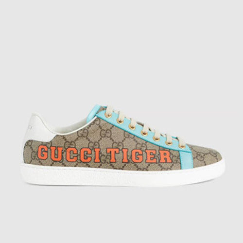 'Gucci Tiger' 모토 프린트가 돋보이는 에이스 스니커즈입니다