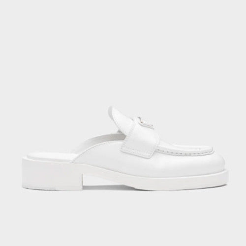 프라다 초콜릿 브러시드 가죽 블로퍼 화이트
