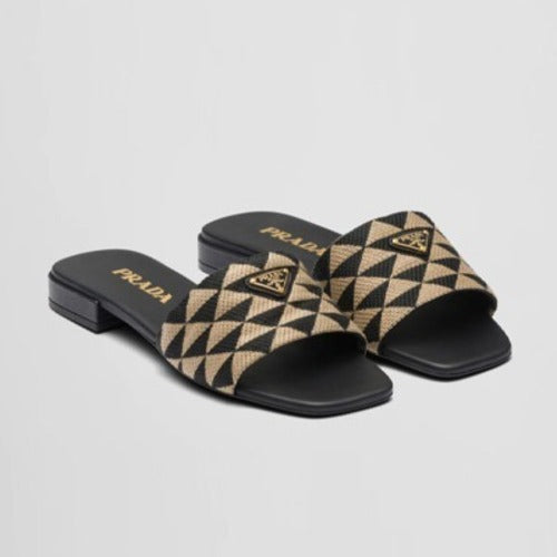 프라다 자수 장식 패브릭 슬라이드 슬리퍼 (차정원 착용)