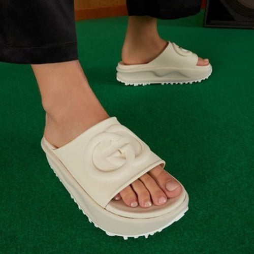 구찌 인터로킹 G 슬라이드 샌들 오프화이트