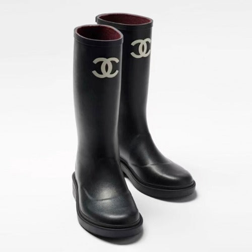 샤넬 CC 로고 하이 레인 부츠 블랙