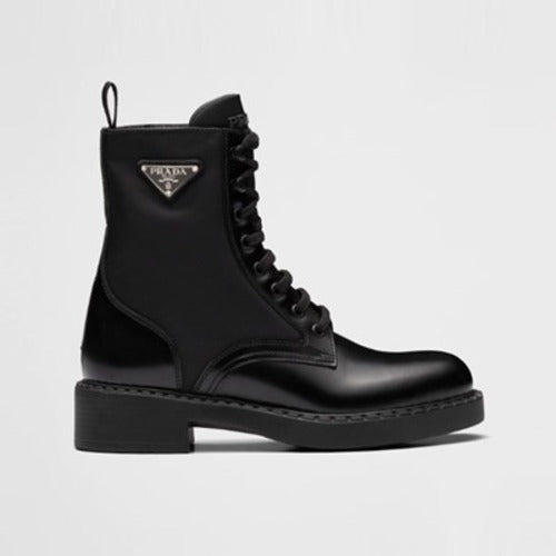 프라다 브러시드 가죽 및 리나일론 부츠 블랙 1T782M