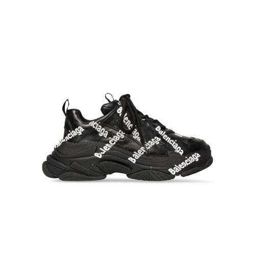 발렌시아가 트리플S 로고 프린트 스니커즈 블랙