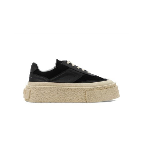 메종마르지엘라 플랫폼 로우 탑 패널 스웨이드 스니커즈 블랙