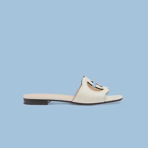 구찌 인터로킹 G 컷아웃 슬라이드 화이트 694451