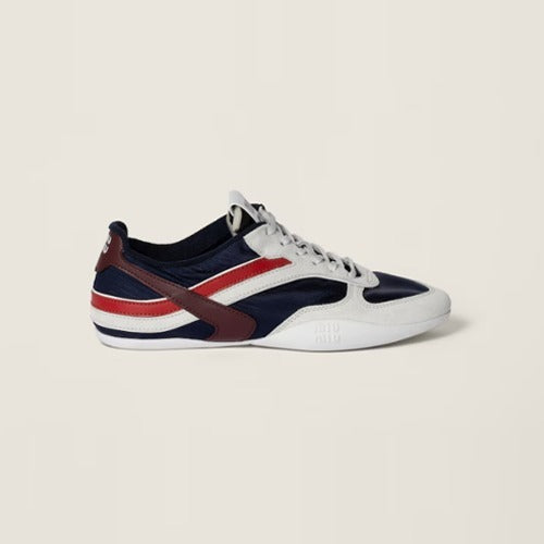 미우미우 김나지움 기능성 소재 및 스웨이드 스니커즈 네이비/레드