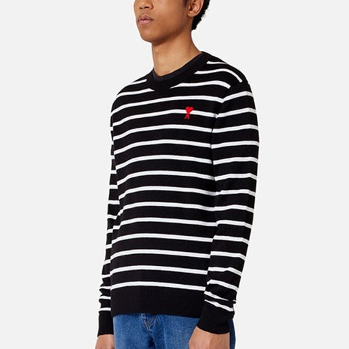 [국내배송] 아미 드 꾀흐 스트라이프 크루넥 스웨터 블랙