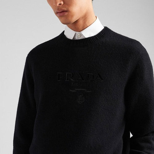 [국내배송] 프라다 엠브로이더 로고 크루넥 스웨터 블랙