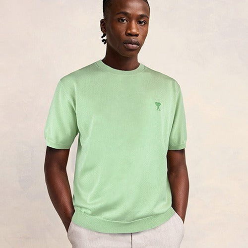 [국내배송] 아미 톤온톤 하트 스몰 로고 반팔 니트 남성용 4color