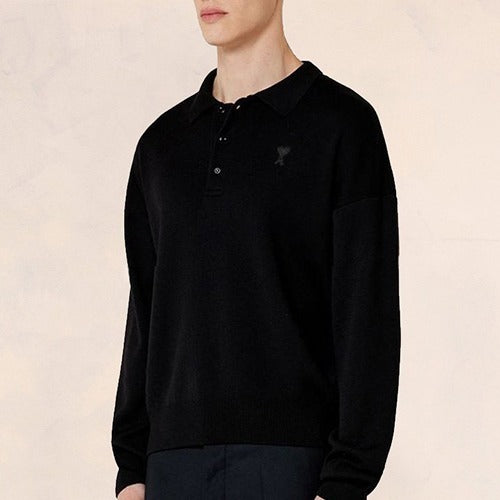 [국내배송] 아미 톤온톤 하트 스몰 로고 카라 니트 5color