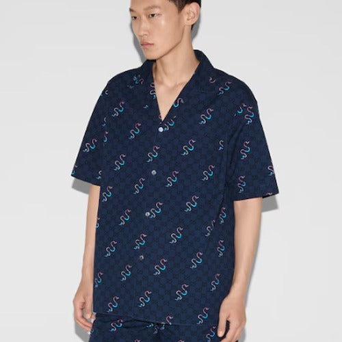 구찌 프린트 코튼 립스탑 반팔 셔츠 794907