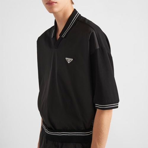 프라다 트라이앵글 로고 피케 폴로 반팔티 블랙