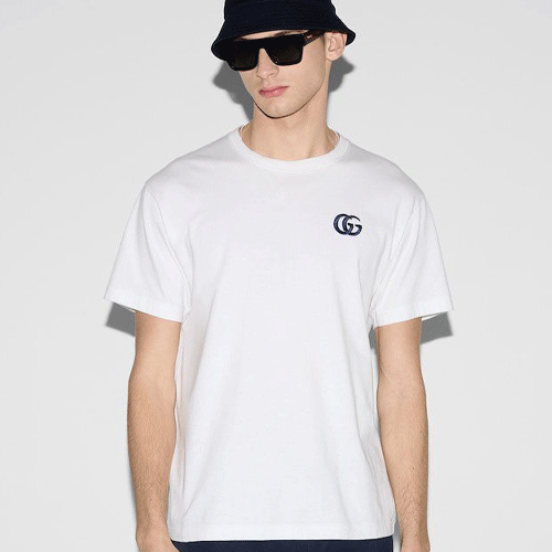 구찌 더블 G 로고 자수 반팔티 화이트