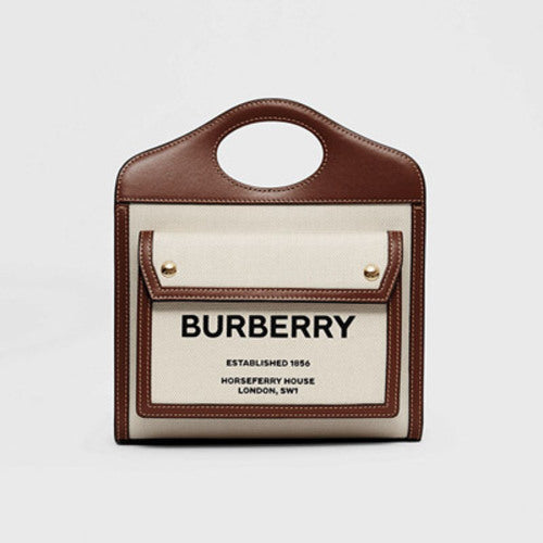 버버리 투톤 캔버스 레더 포켓 미니 토트백 내추럴브라운 (효연,이하이 착용)