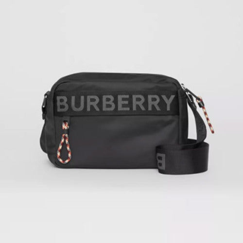 블랙 가죽 트리밍 및 자카드직으로 연출된 버버리 로고가 돋보이며