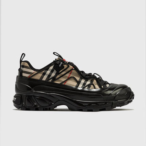 버버리에서 출시된 빈티지 체크 코튼 레더 아서 스니커즈입니다