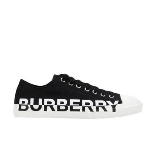 버버리 로고 프린트 코튼 개버딘 스니커즈 블랙