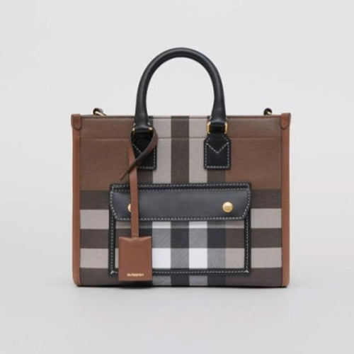 조화로운 버버리 체크 레더 미니 프레야 토트백입니다
