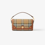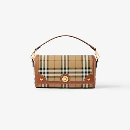 버버리 체크 레더 탑 핸들 스몰 노트백
