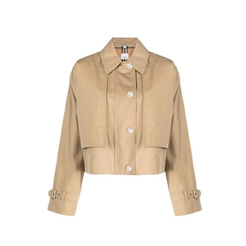 버버리 코튼 개버딘 크롭 트렌치 코트 베이지