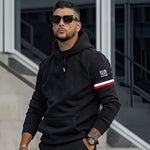 후드 라인과 소매 암밴드 장식, 로고 패치, 끈 팁 로고,