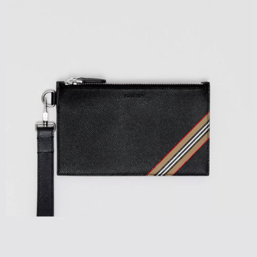 버버리 아이콘 스트라이프 프린트 레더 지퍼 파우치