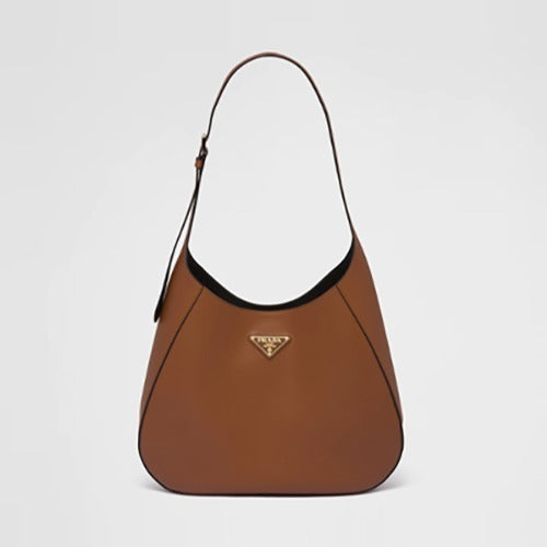 프라다 탑스티치 장식 라지 가죽 숄더백 브라운 1BC181