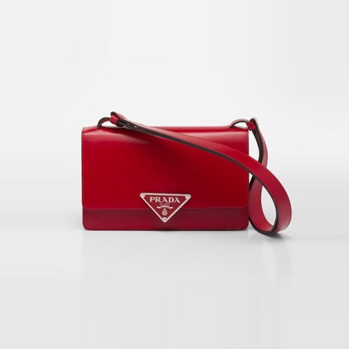 프라다 엠블럼 브러시드 가죽 숄더백 레드 1BD321