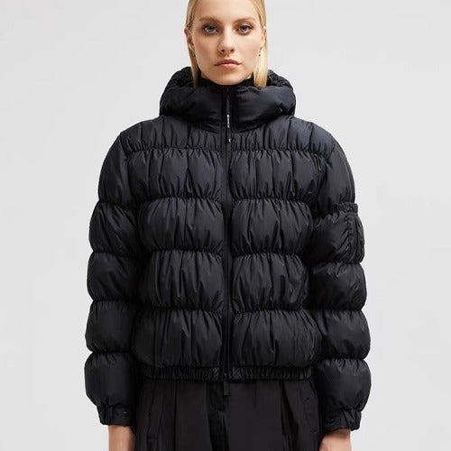 세련된 핏과 주름진 부댕 퀼팅이 특징이며