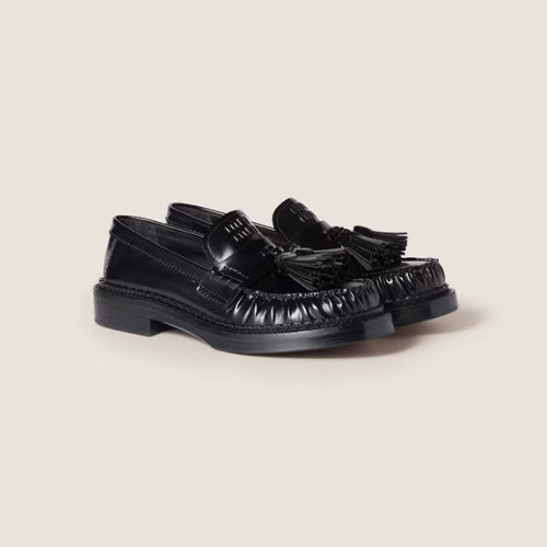 미우미우 폴리시드 가죽 테슬 로퍼를 소개합니다