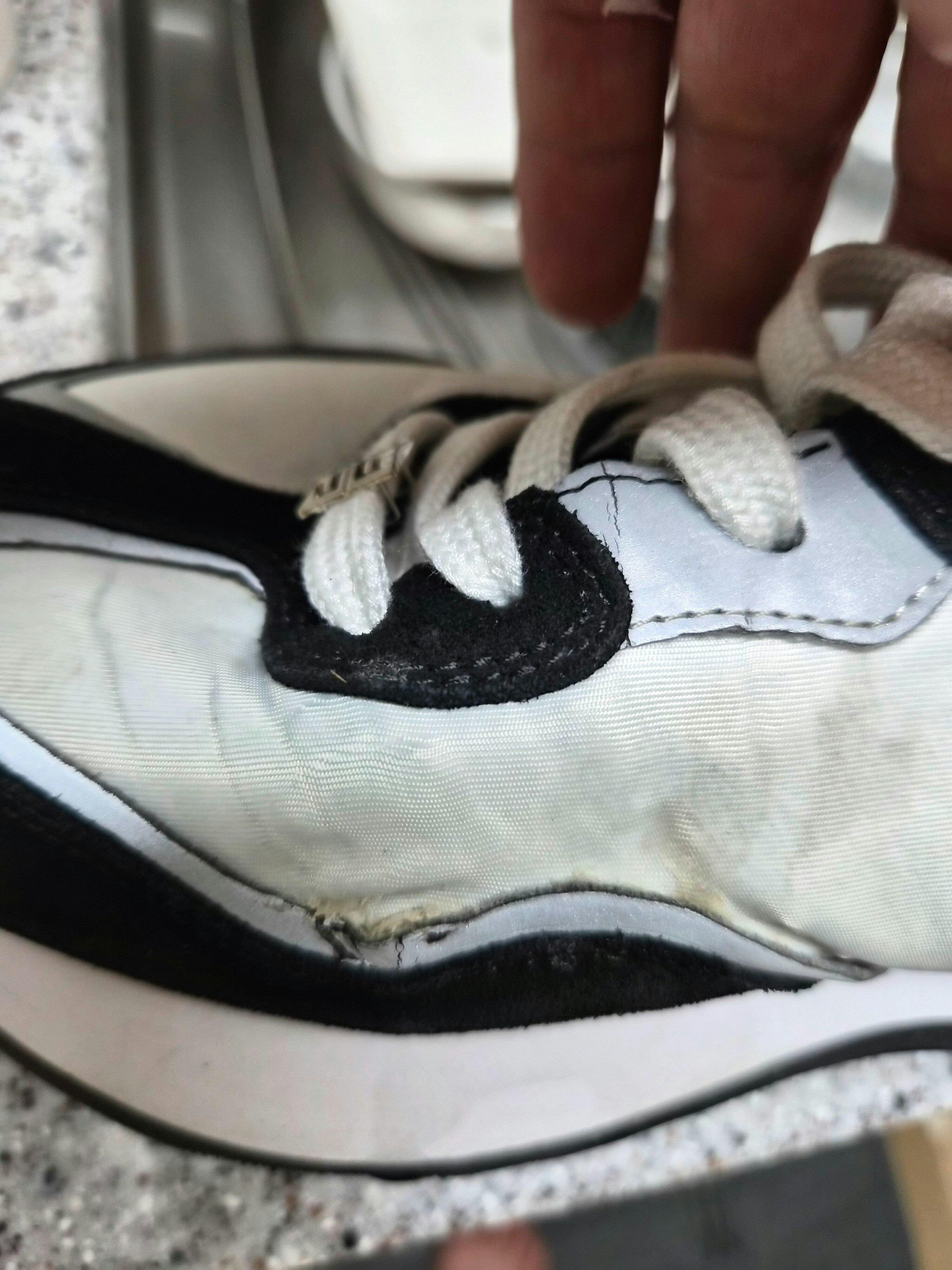배송도 검수 통과 안되었다고 한달 보름이나 걸렸는데 2주 다섯번 정도 신었는데 덧댄 양 옆조각이 벌어지고 야광띠는 일부 떨어져 나가고 신발 천도 울어 쭈글해 졌습니다. 오늘 과감히 짜증나 버렸습니다.