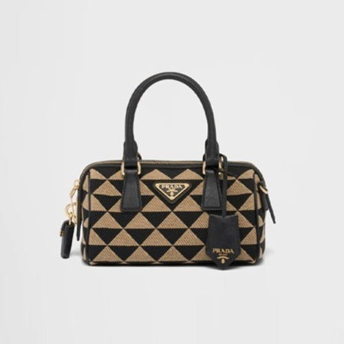 프라다 자수 패브릭 탑 핸들백 1BB846