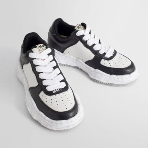 메종 미하라 야스히로 웨인 OG 솔 레더 로우탑 스니커즈 블랙/화이트