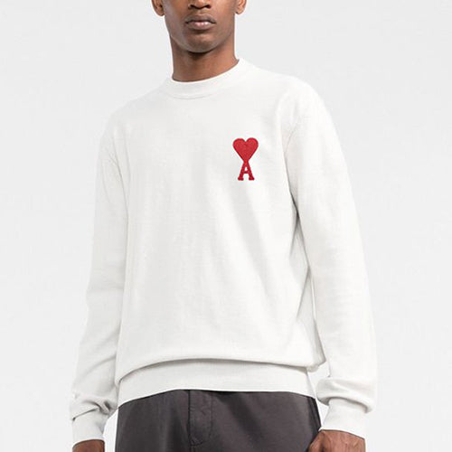아미 하트 로고 자수 라운드 남성 니트 2color
