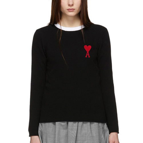 아미 하트 로고 자수 라운드 여성 니트 2color