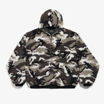 카모 패턴과 드롭 숄더 라인, 로고 디테일 지퍼 클로저,